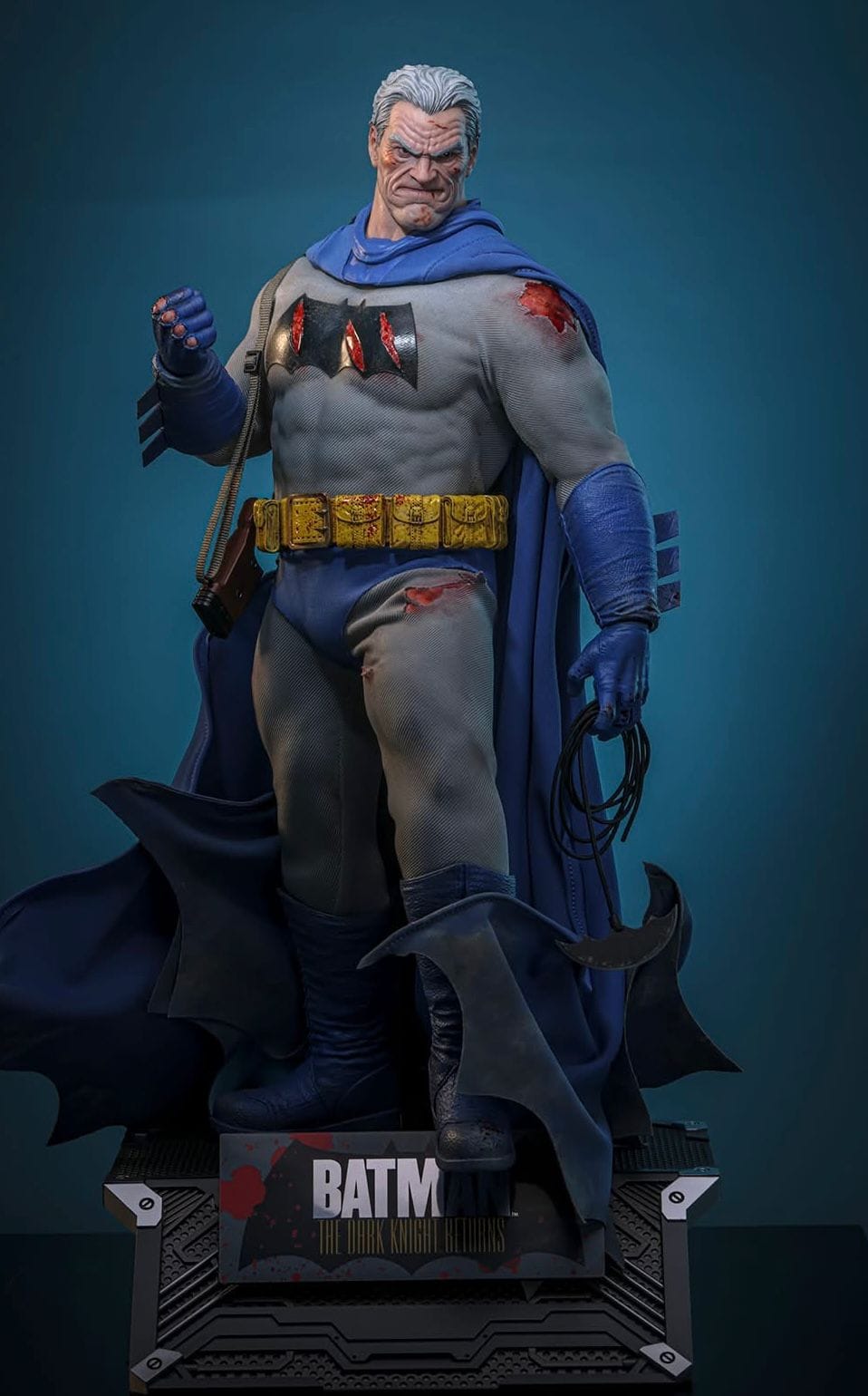 • Authentic and detailed likeness of Batman™ in battle-damaged state from the Batman: The Dark Knight™ Returns comic series